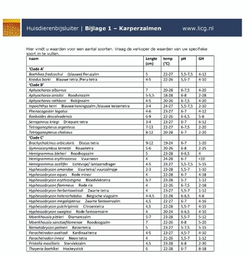 Wildvang dieren stellen vaak hogere eisen aan de waterwaarden. Zie ook de tabel in bijlage 1 en laat u goed informeren als u karperzalmen koopt, zodat u weet wat uw soort nodig heeft.