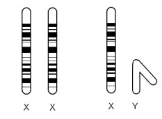 Afb. 2: links de geslachtschromosomen van een vrouw, rechts die van een man