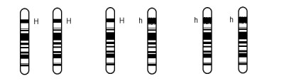 Aansluitend op het voorbeeld over haarlengte zullen we een paar mogelijkheden gaan bekijken. Onthoud dat H de code voor kort haar is, h de code voor lang haar is, en dat H dominant is over h (dus dat kort haar het wint van lang haar).