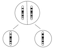 Afb. 4: Er ontstaan 2 geslachtscellen met van elk chromosoom 1 exemplaar, in plaats van 2.