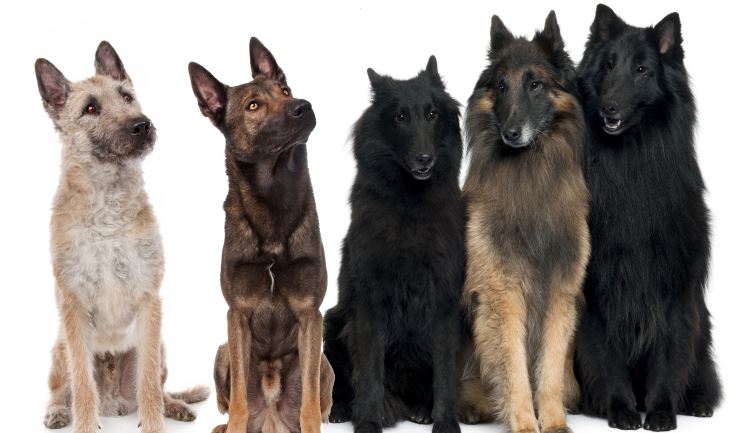 De vier variëteiten hebben verschillende vachten. De Mechelse Herder is kortharig, de vacht is zwart gevlamd vaalros (geelbruin met daartussen haren met zwarte uiteinden) en een zwart masker. De Tervuerense Herder is wat kleur betreft gelijk aan de Mechelse Herder of zwartgevlamd grijs maar heeft een langharige vacht, behalve op de kop, op de oorpunten en aan de voeten. Langs hals en borst, aan de achterkant van de dijbenen en de staart is het haar langer dan op de rest van het lichaam. De Groenendaeler heeft lang haar zoals de Tervuerense Herder maar is helemaal zwart. De Laekense Herder is ruwharig. Het haar is warrig en vaalros van kleur met op snuit en staart wat zwart gevlamde haren.