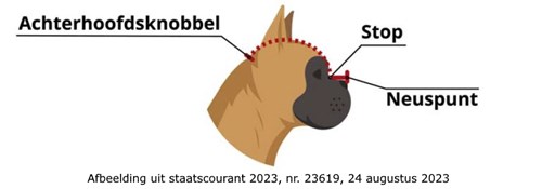 In Staatscourant nr. 23619 van 2023 staat hoe de CFR gemeten moet worden. Meet de afstand van de neuspunt tot de stop (het punt waarop de snuit overgaat in het voorhoofd). Deel dit door de afstand vanaf de stop naar de achterhoofdsknobbel, gemeten over de kromming van de schedel.