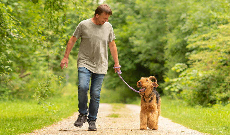 Let tijdens het wandelen goed op uw hond. Samen wandelen betekent samen bezig zijn. Wees een team! Laat hem ook snuffelen. Gebruik uw stem als u iets van hem wilt en ruk niet aan de lijn. Geef uw hond tenminste eens per dag de kans om te rennen.