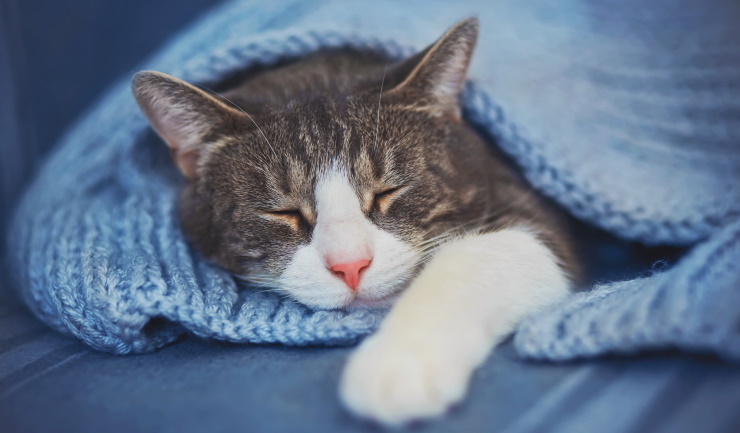 Zorg voor katten voor genoeg warme slaapplekjes waar ze kunnen wegkruipen; denk aan zachte kattenmandjes met een hoge zijkant of deels overkapt, of kartonnen dozen met een kleedje erin.