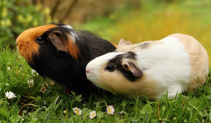 Cavia’s worden soms met konijnen samen gehouden. Dat kan goed gaan, maar konijnen en cavia’s spreken elkaars taal niet en het konijn kan de cavia verwonden of op de cavia gaan rijden. Ook hebben cavia’s voer met extra vitamine C nodig en konijnen niet. Het is dan ook geen ideale combinatie.