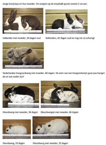 Hier vindt u een aantal foto's van jonge konijntjes zodat u een idee krijgt van het formaat. Door op het plaatje te klikken ziet u een grotere versie.