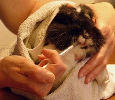 Soms heeft een konijn medicijnen nodig die hij moet inslikken, bijvoorbeeld pijnstillers of middelen die de darm stimuleren. Ook moet een konijn soms gedwangvoerd worden als hij niet zelf wil eten.