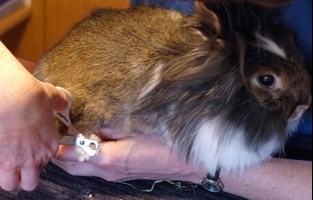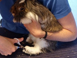 Bij het knippen van de nagels bij minder rustige konijnen is het fijn als u met twee personen bent. De één kan dan het konijn vasthouden terwijl de ander knipt.
