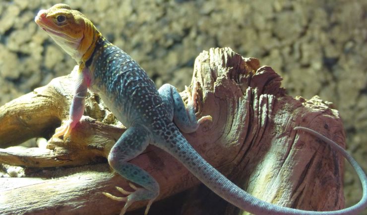 De halsbandleguaan is een dagactieve hagedis die in verschillende kleuren voorkomt. Ze zijn zeer actief en erg mooi om naar te kijken. Omdat deze dieren een winterslaap houden, is ervaring met reptielen wel belangrijk.