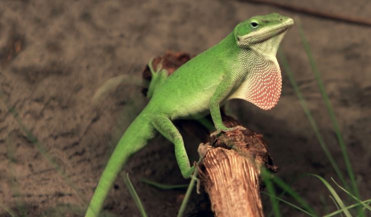 Reptielen zoals de roodkeelanolis zullen nooit echt “tam” worden, deze dieren zijn ook niet bedoeld om te knuffelen, maar om naar te kijken.